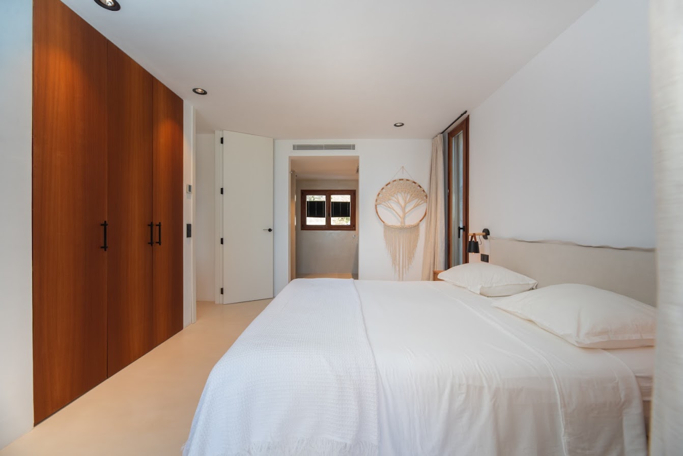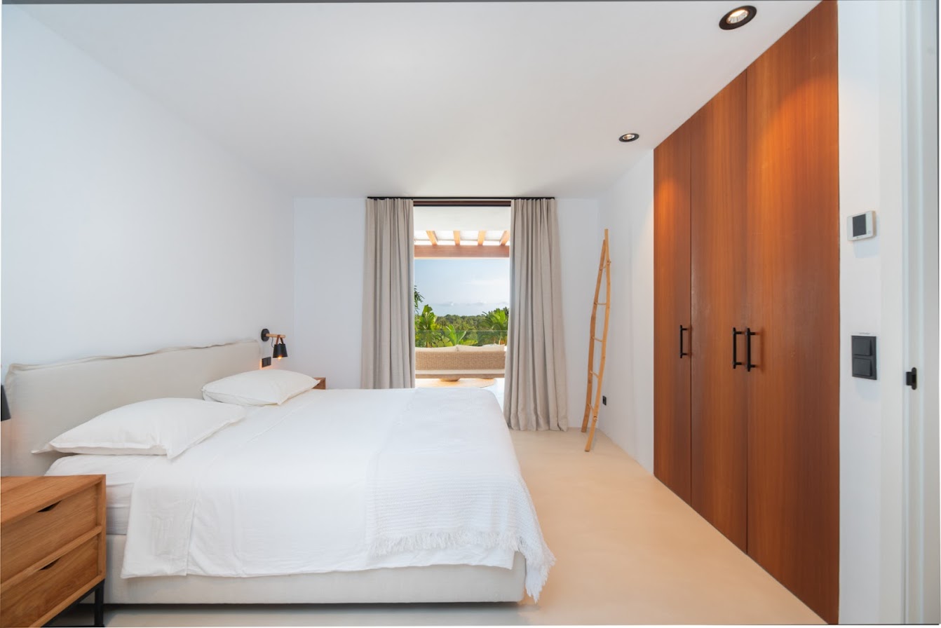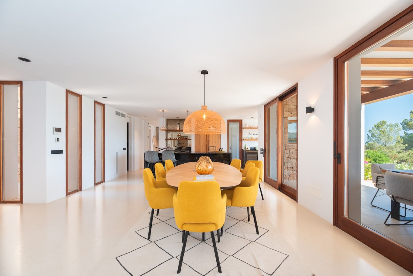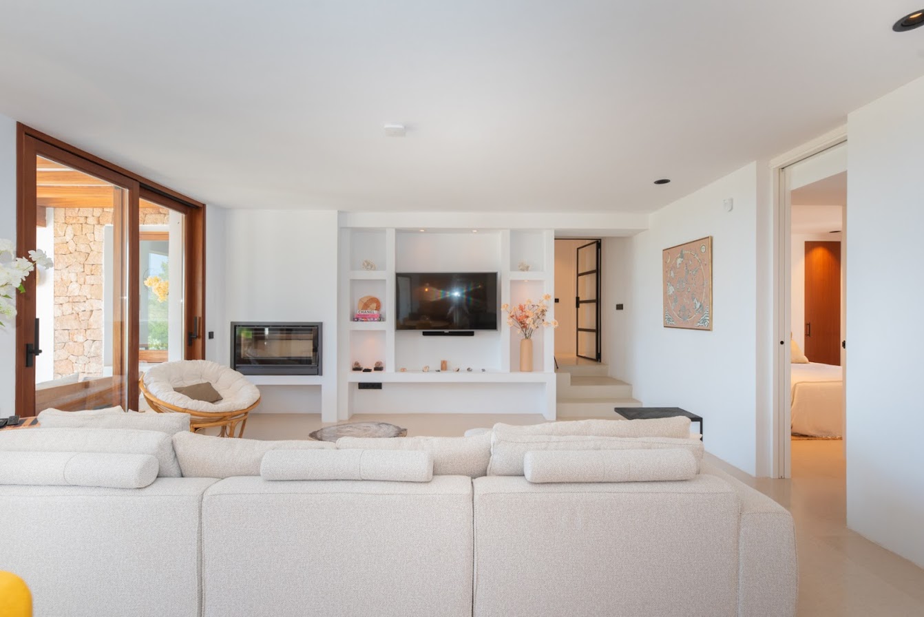 Renowned beach clubs, fine dining, boutique shopping, and essential amenities are all easily accessible, while Ibiza Town and San Antonio can be reached within a short drive. The villa is defined by its generous proportions, elegant architecture, and commanding sea views from multiple levels.