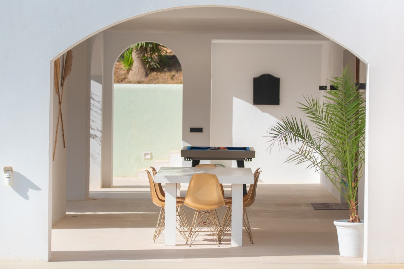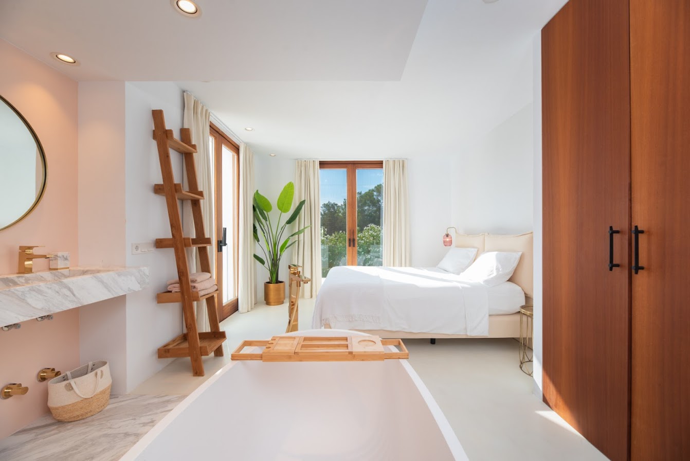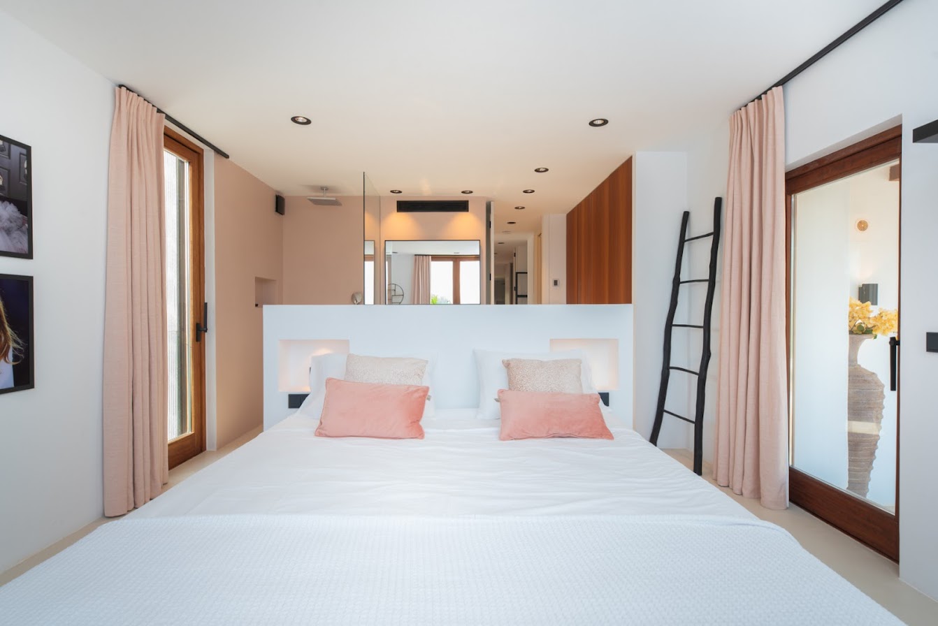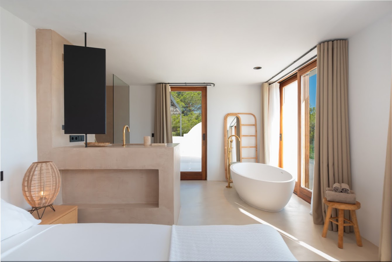 Renowned beach clubs, fine dining, boutique shopping, and essential amenities are all easily accessible, while Ibiza Town and San Antonio can be reached within a short drive. The villa is defined by its generous proportions, elegant architecture, and commanding sea views from multiple levels.